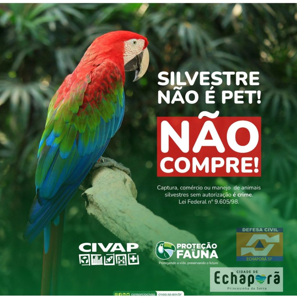 É CRIME: Capturar, vender ou manter animal silvestre sem autorização é crime (Lei 9.605/98).
